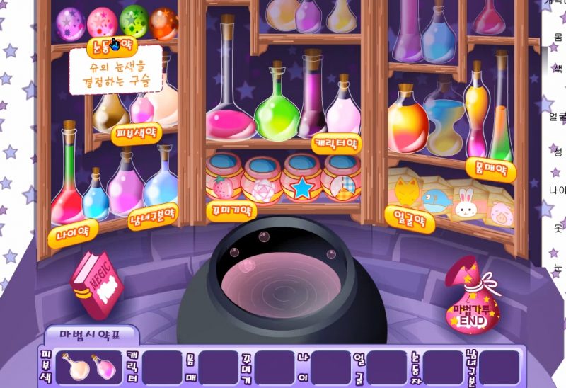이제 맞는 물약들을 생각하면서 넣으면 슈로 변신할 수 있게됩니다. 하지만 제가 이게임이 약간 꺼름직한 느낌이 있는 것 같은데 그 이유는 마녀가 그냥 슈의 모습으로 변신해서 무신 짓을 벌일지 모르기 때문에 약간 무서우면서 꺼름직한 느낌이 있다고 생각합니다.