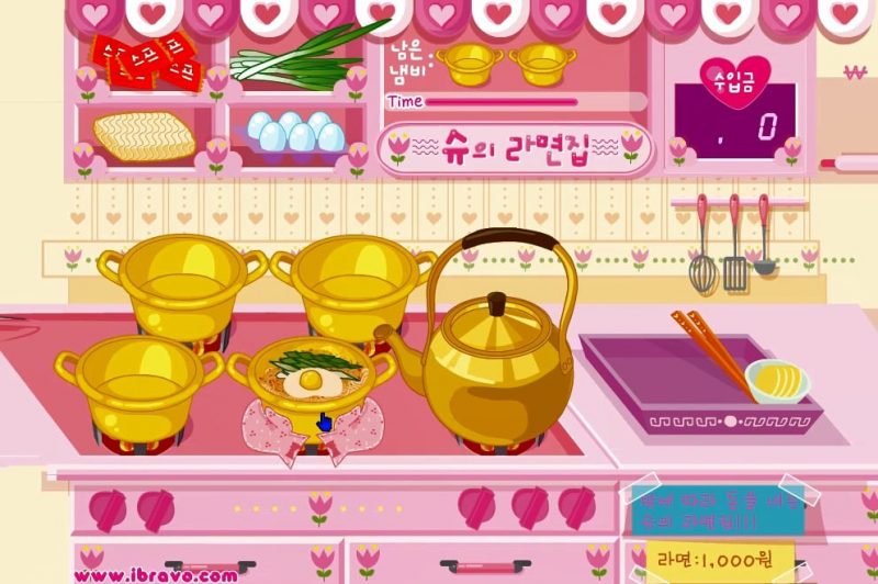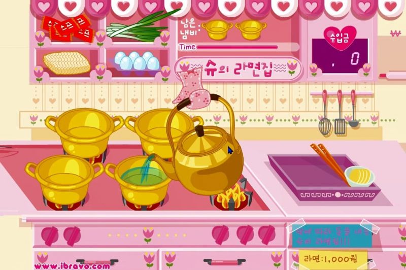 이제 물을 붓고 라면을 끓여볼 건데 물을 넣고 면과 스프만 넣어도 되는줄 알았지만 파와 달걀도 같이 넣어야했네요. 그리고 재료들을 다 넣었다면 라면이 불지않고 너무 안익지않을 만큼 딱 손님들에게 라면을 내주면 수입금이 올라가게 됩니다. 하지만 너무 라면을 안준다면 냄비가 타버리기도 하죠. 지금 슈의 쥬니버게임을 즐겨주세요.